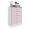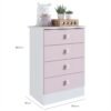 Cômoda em MDP BP branco 15 mm (nas laterais e prateleiras), acabamento laca nas frentes de gaveta. Gavetas com corrediça telescópica. Puxador na cor branca. Utilizada em quarto de bebê ou infantil. Puxador em formato de urso.