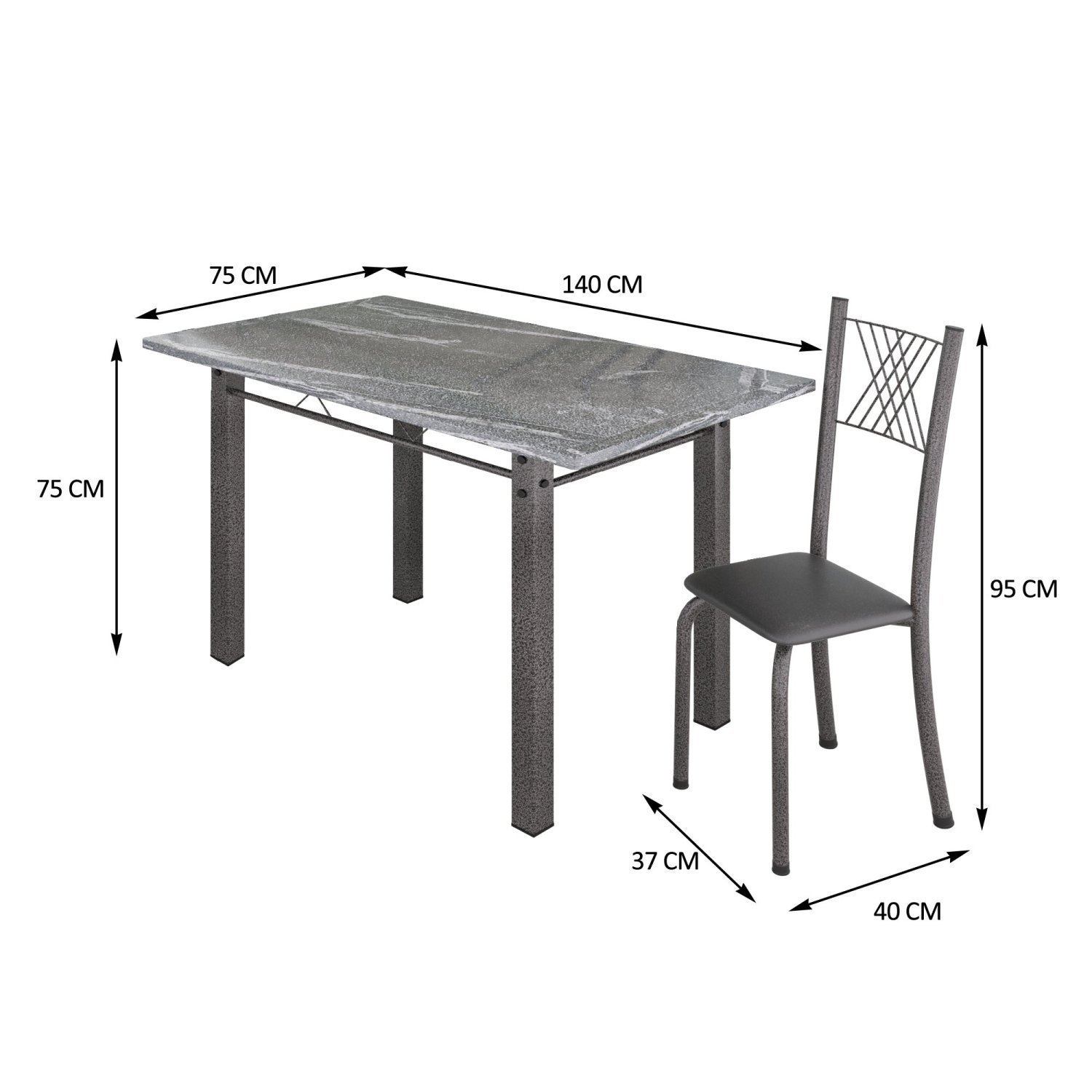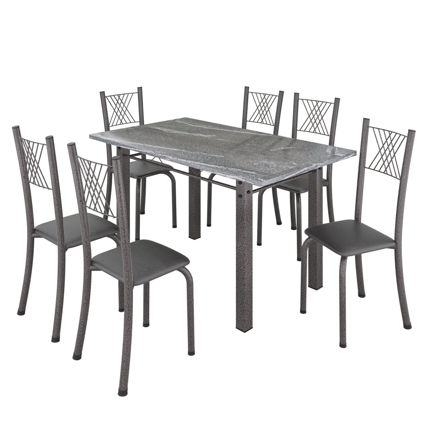 Conjunto Mesa com 6 Cadeiras Tampo de Granito Topázio Sara