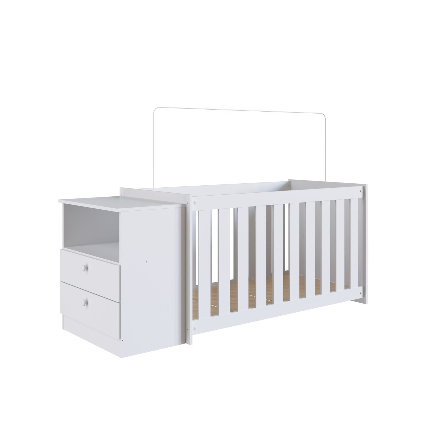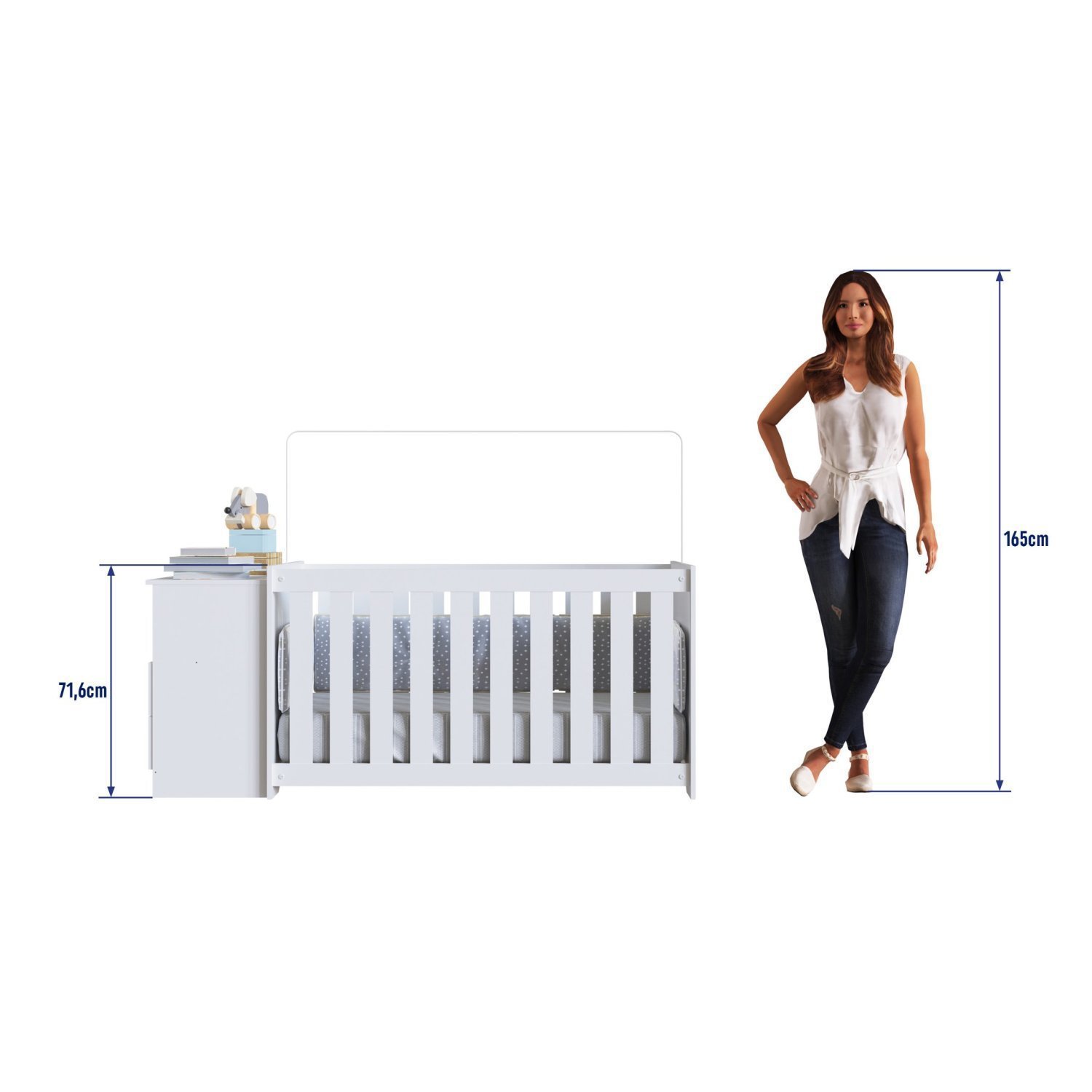 Conjunto Quarto de Bebê Berço Cômoda Branco com Colchão Linha Aconchego Completa Móveis. Berço Branco Linha Aconchego da Completa Móveis é versátil, prático e elegante, com características que o destacam. Ideal para seu bebê, possui três opções para regulagem de altura do colchão, facilitando e o tornando prático para a mamãe e o papai no decorrer dos meses! Produto certificado pelo INMETRO. A Cômoda Trocador Branca 02 Gavetas com Nicho Linha Aconchego da Completa Móveis é versátil, prática e elegante, com características que a destacam. Ideal para o quarto do seu bebê. Gavetas que facilitam e otimizam o espaço e aconchego para o ambiente. Produto em MDP com corrediças metálicas e puxadores plásticos.