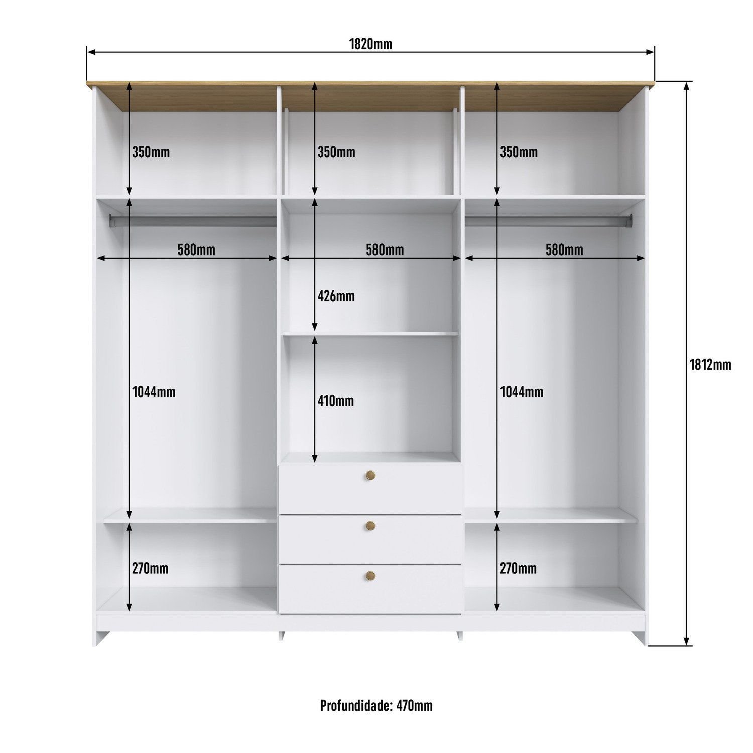 O dormitório Americano é sofisticado, aconchegante e cheio de estilo. O Guarda-roupa com 6 portas e três gavetas espaçosas com corrediças metálicas, tem lindos puxadores em ponto dourados, que dão um toque a mais de beleza ao móvel. Todas as peças do produto são numeradas para facilitar no momento da montagem.