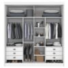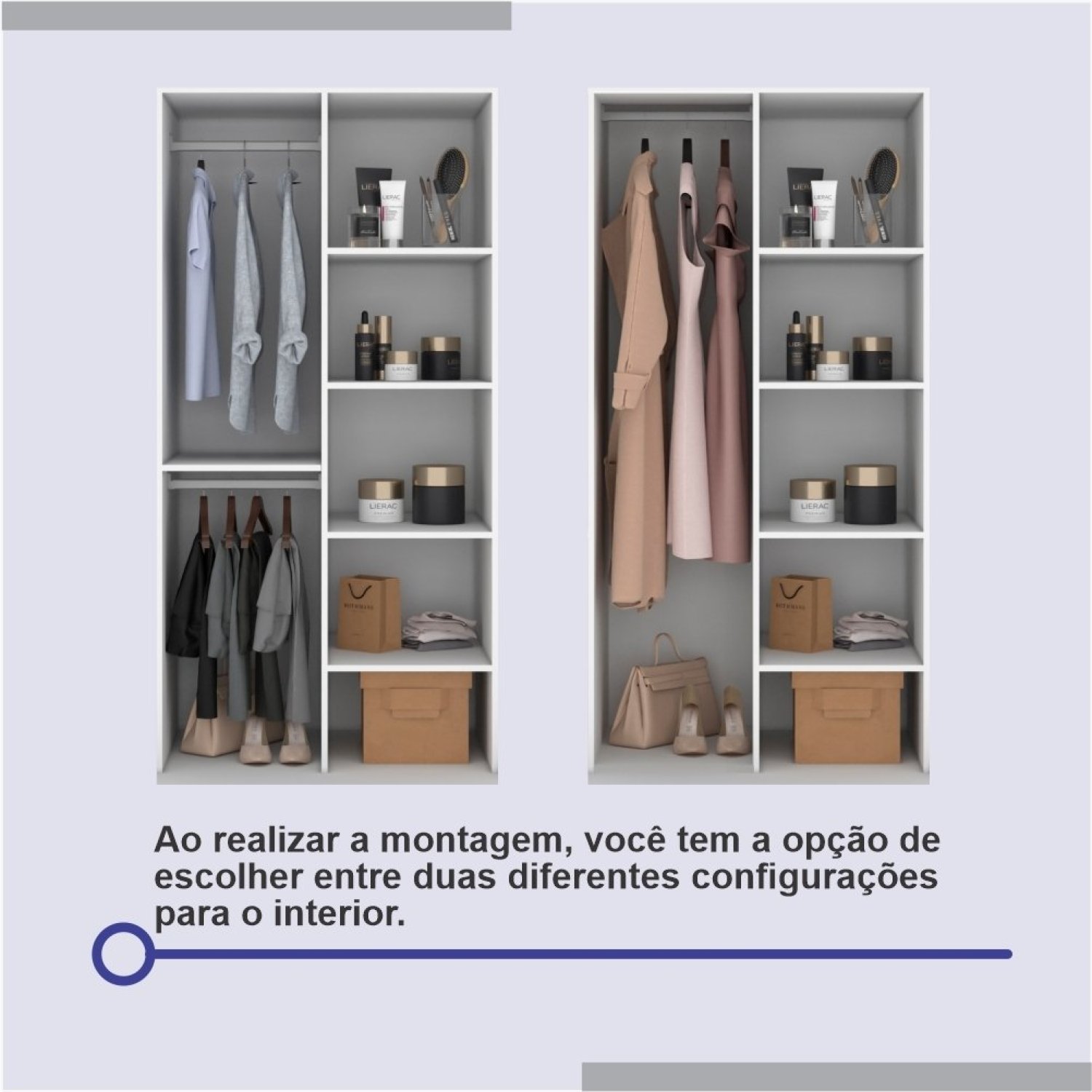 O Roupeiro Coliseu possui duas portas, uma delas com espelho, um móvel elegante e funcional que vai iluminar seu ambiente. As seis gavetas oferecem um espaço prático para armazenar acessórios e itens menores de forma organizada. Além disso, os três cabideiros proporcionam amplo espaço para pendurar suas roupas, evitando amassados indesejados. Com as duas opções de montagem interna, você pode personalizar o espaço interno do seu roupeiro.Suas portas são flex, todo cinamomo (SEMI FOSCO) ou cinamomo off white(SEMI BRILHO). O roupeiro Coliseu é a combinação perfeita de estilo, utilidade e versatilidade, o que faz dele uma ótima opção para o seu quarto.