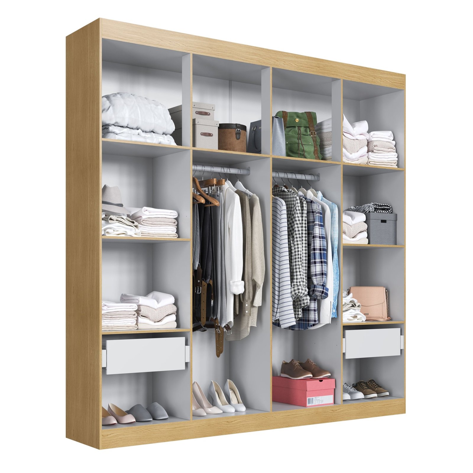 O mais completo guarda-roupa de casal da categoria! Este roupeiro da Genialflex com 4 portas garantem espaço suficiente para guardar todos os pertences como camisas, vestidos, roupas íntimas, sapatos, decoração, etc. Possui 02 gavetas internas, cabideiro e prateleiras, que deixa o roupeiro ainda mais espaçoso e bem dividido.