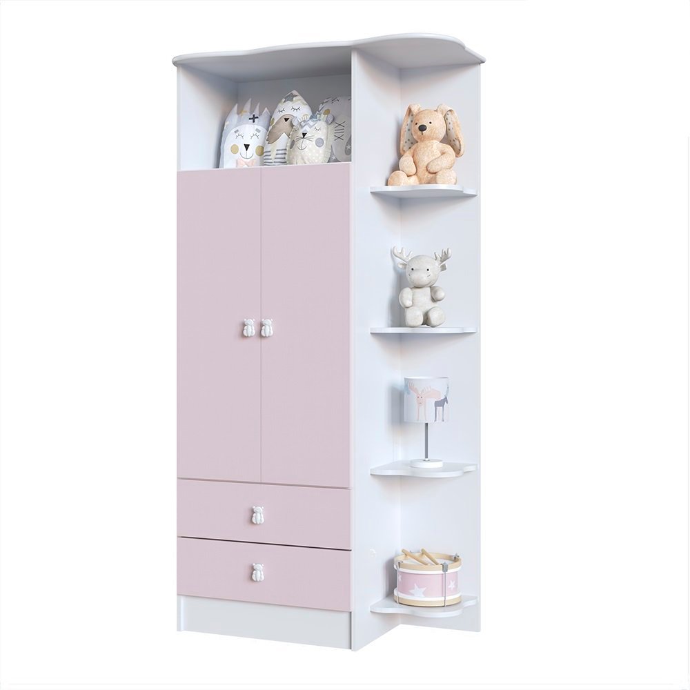 Guarda-Roupa de Bebê 2 Portas em MDP BP branco 15 mm (nas laterais e prateleiras), acabamento laca (15mm) nas portas e frentes de gaveta. Gavetas com corrediça telescópica, dobradiças metálicas. Indicado para quarto de bebês.!