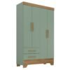 Apresentamos um guarda-roupa da linha infantil que combina estilo e funcionalidade. Sua construção robusta inclui laterais, divisões, chapéus e prateleiras em MDP de 12mm, com rodapés, frente de gavetas, encabeçamento e portas em MDP de 15mm. O fundo do roupeiro e das gavetas é feito de MDF de 3mm. Detalhes como corrediças metálicas de 350mm e puxador em MDF, tornam-no atraente. O interior é bem organizado, incluindo um cabideiro de madeira revestida. A pintura UV fosca e o moderno padrão de cores internas acrescentam estilo. A montagem é simplificada com um manual detalhado, parafusos e cavilhas. Durante o transporte, é protegido com embalagem cuidadosa, incluindo medidas de segurança no topo e travamento das peças. Uma escolha prática e elegante para embelezar o quarto infantil!