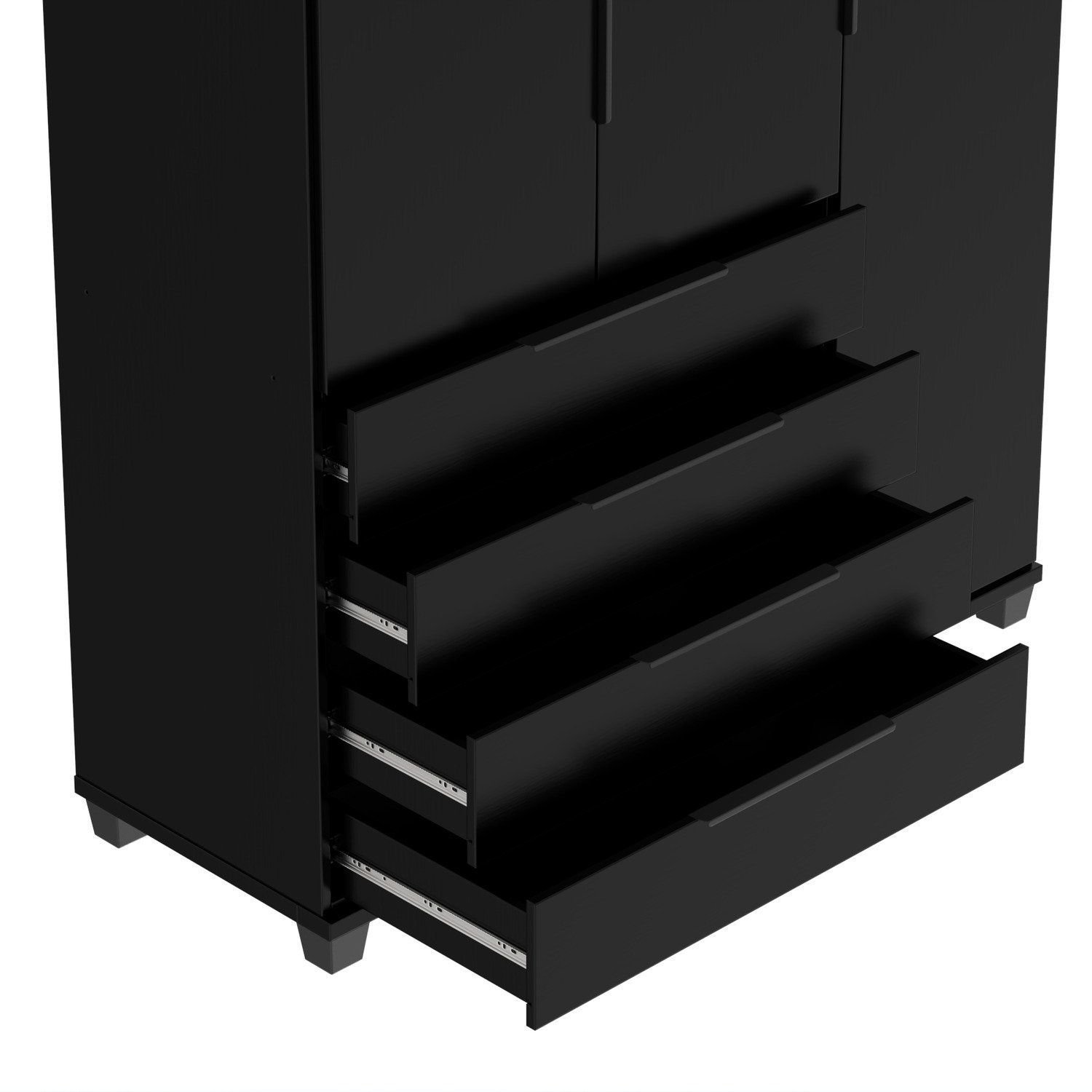 O guarda-roupa Allen é a escolha perfeita para quem valoriza amplo espaço, organização inteligente e acabamento sofisticado. Fabricado em MDF de alta qualidade, conta com acabamento em verniz e pintura UV, que garantem resistência e um visual refinado.Suas portas possuem dobradiças robustas e puxadores em aço carbono com pintura eletrostática, que unem durabilidade e estilo. Internamente, o Allen oferece dois cabideiros em alumínio cromado e quatro gavetas espaçosas com corrediças telescópicas, para um deslizamento suave e silencioso.Os pés em polipropileno de 6 cm proporcionam estabilidade e segurança ao móvel. Indicado para ambientes internos, suas prateleiras suportam até 5 kg cada, garantindo versatilidade no armazenamento.Invista no guarda-roupa Allen para transformar seu ambiente com funcionalidade e elegância.