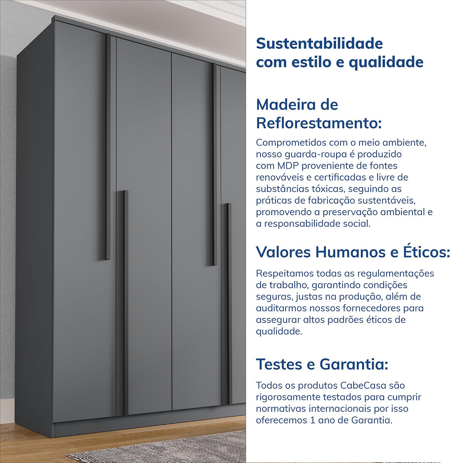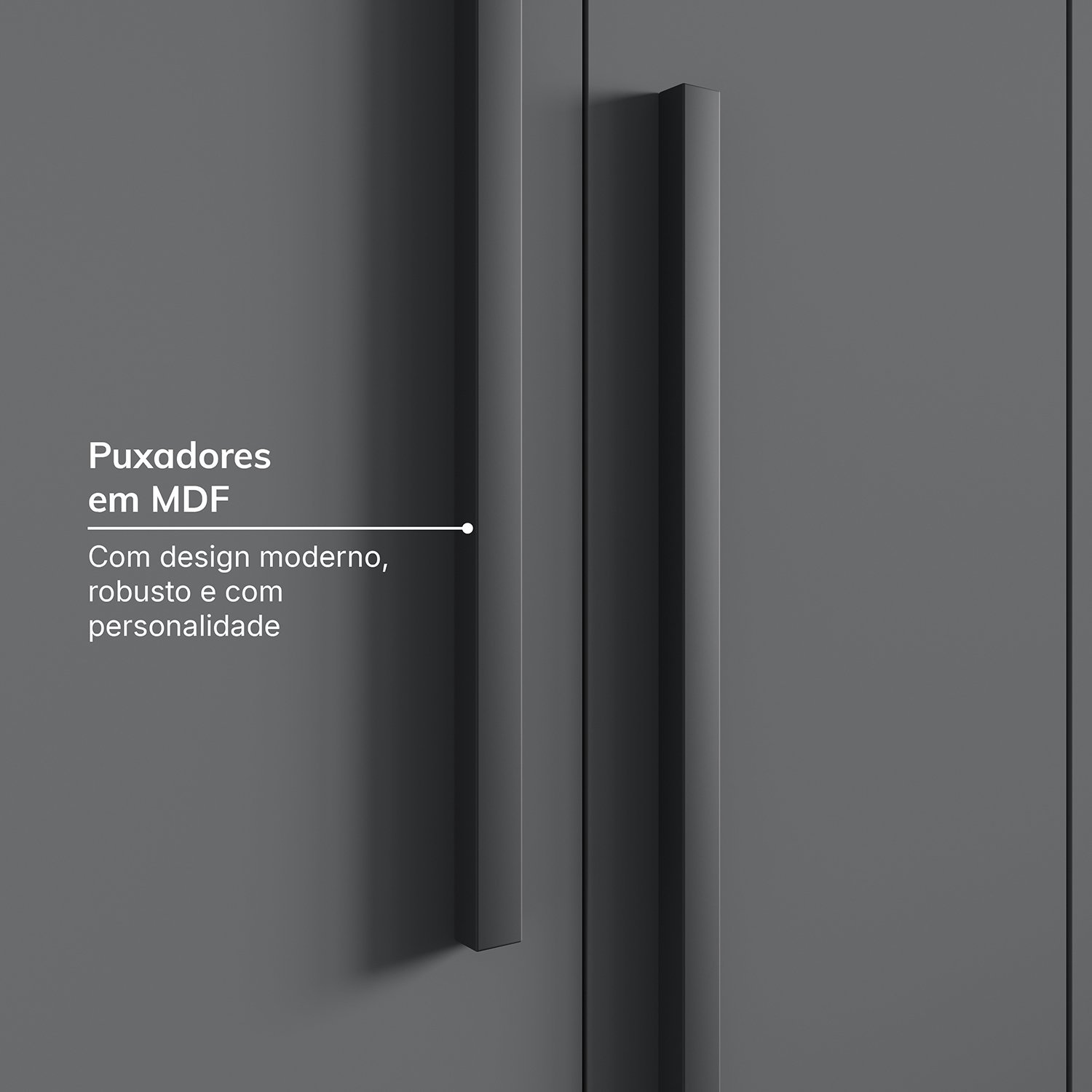 O Guarda-Roupa Sarah combina estilo e funcionalidade em um design moderno e versátil, produzido 100% em MDF com acabamento em pintura UV de alta durabilidade. Pensado para oferecer o máximo em organização, o Sarah conta com divisórias internas projetadas para otimizar o espaço e melhorar a funcionalidade no dia a dia. Seus puxadores imponentes adicionam um toque de personalidade única, transformando qualquer quarto em um espaço sofisticado e organizado. O cabideiro de alumínio garante durabilidade e elegância, enquanto as gavetas internas, equipadas com corrediças telescópicas resistentes, proporcionam uma abertura total mais suave. As dobradiças com amortecimento asseguram um fechamento silencioso e seguro, cuidando do seu móvel por muito mais tempo. Disponível nas versões de 6 e 4 portas e em cores sofisticadas e facilmente adaptáveis o Guarda-Roupa Sarah é a escolha perfeita para quem busca praticidade, beleza e um toque de personalidade em um móvel que se adapta a qualquer ambiente.