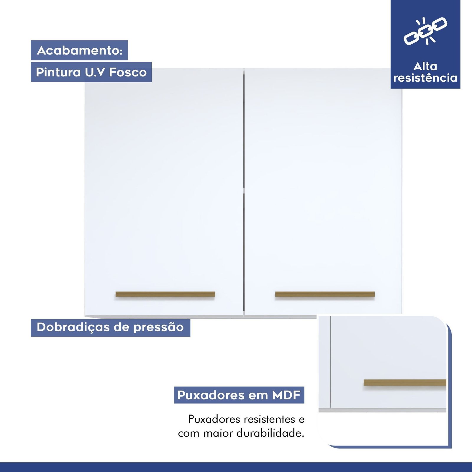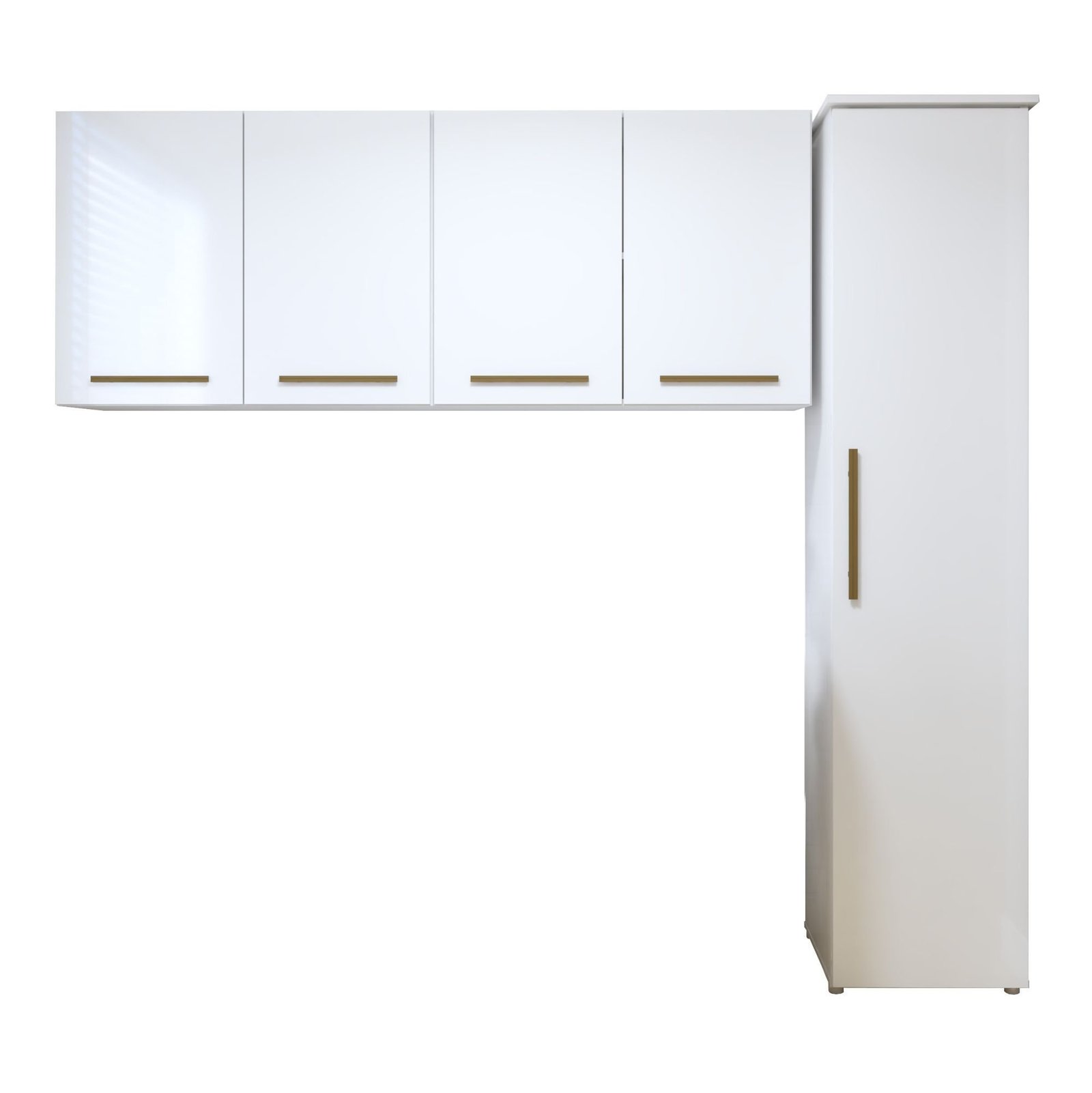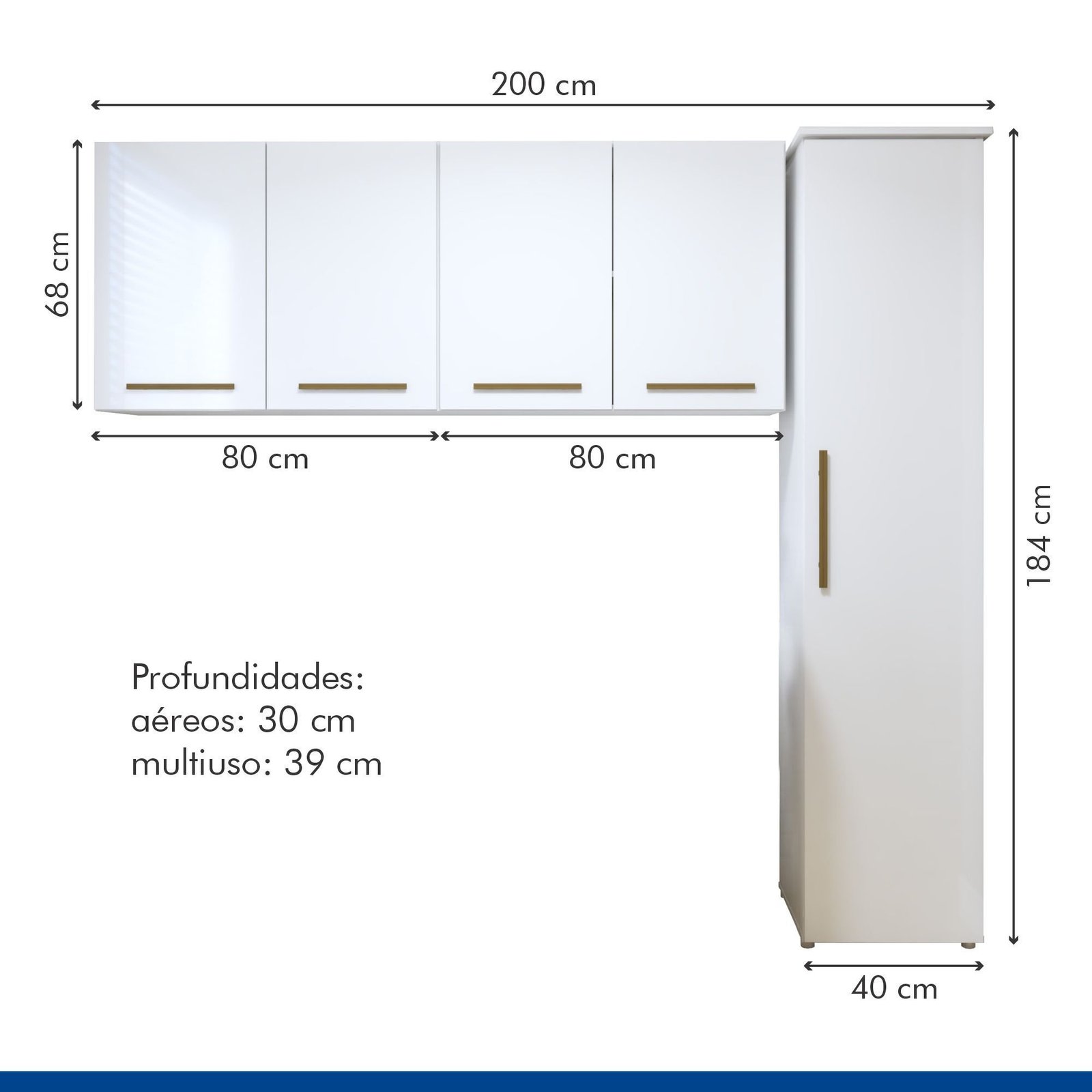 Nosso conjunto de móveis para área de serviço é ideal para quem deseja otimizar a área de serviço com organização e praticidade. Oferece amplo espaço para armazenar produtos de limpeza, ferramentas e outros itens, aproveitando tanto o espaço vertical quanto o chão. Os armários aéreos ajudam a liberar espaço no ambiente, mantendo tudo bem organizado e acessível. Com um design moderno e resistente, o conjunto combina funcionalidade e estilo, trazendo mais eficiência ao seu dia a dia!Quais são os melhores armários para lavanderia pequena? Os melhores modelos são armários com prateleiras que otimizam espaço e ajudam a organizar produtos e utensílios de forma prática.Posso usá-lo como armário de cozinha? Claro, basta usar a criatividade e conseguirá usar em vários ambientes.