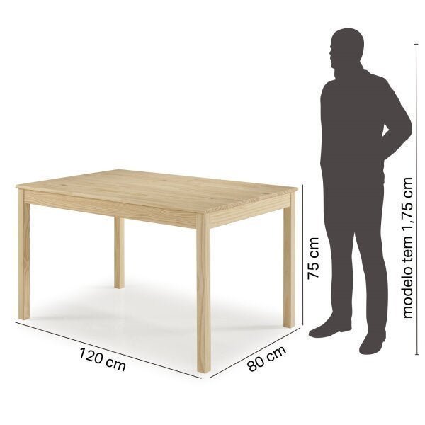 A Mesa de Madeira Maciça é um produto especial, cheio de estilo, feito para você e é bem fácil de montar. com um detalhe estiloso, deixando sua sala de jantar mais e pronta para receber sua família. Feita para receber seus amigos para uma noite de jogos, gostosas refeições com quem você ama ou para seu estudos. A Mesa de madeira maciça pinus tratada, tingida com aplicação de verniz super-resistente. As medidas desse produto são 120 x 80 x 75cm. Depois nos conte como foi a experiência de compra e como ficou seu ambiente nos comentários.
