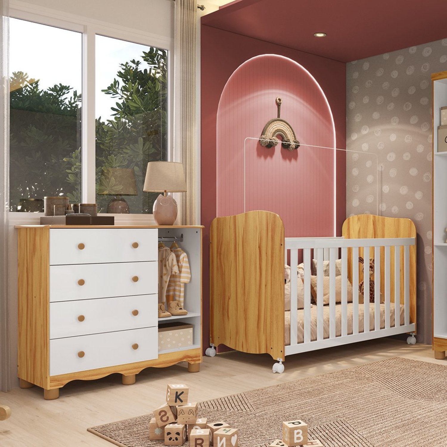 O Quarto Lana é perfeito para o seu bebê, oferecendo requinte e praticidade. Com um berço padrão americano certificado pelo INMETRO, uma cômoda com porta janelada em PETG Cristal/Acrílico para facilitar a organização, este conjunto é ideal para pais que valorizam a segurança e o conforto. Feitos em 100% MDF e acabamento em Pintura UV atóxica, todos os detalhes foram pensados para criar um ambiente seguro e acolhedor para o seu filho. Prepare-se para momentos especiais com seu bebê no Quarto Lana. (Obs: Colchão não incluso e o berço não pode ser transformado em mini-cama). Medidas do Ambiente (cm): Cômoda: 88 x 95,3 x 42,3 (AxLxP – cm) Berço: 98,6 x 132,4 x 76 (AxLxP – cm)